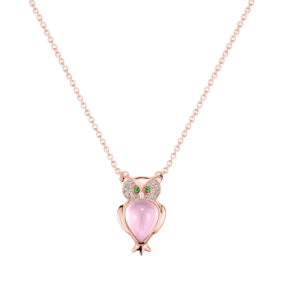Náhrdelník s diamantmi, ruženínom a granátmi Wisdom Owl