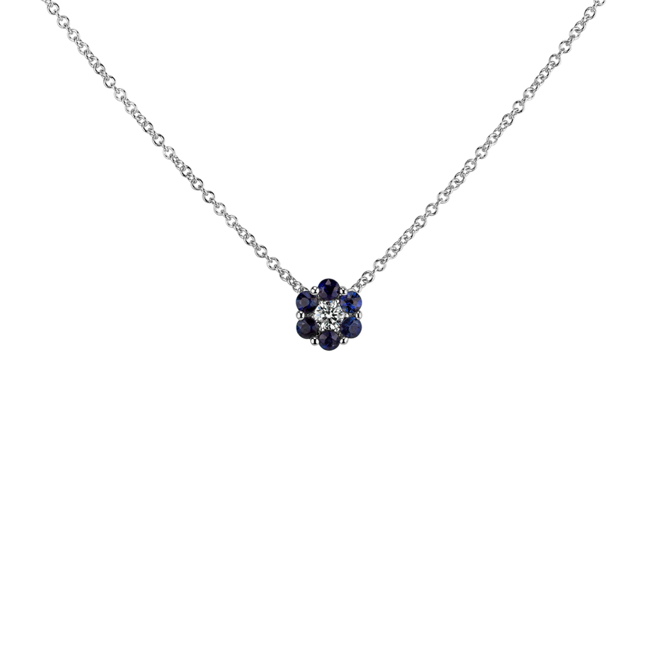Náhrdelník so zafírmi a diamantom Shiny Flower