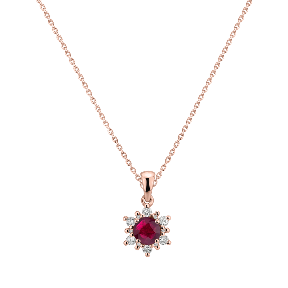 Krása a sila sa spájajú v tomto prívesku z ružového zlata 14kt s diamantmi a rubínom. Jeho oslnivý dizajn je metaforou pre neskrotného ducha a ambície. Ideálna odmena pre všetkých, ktorí si cenia luxus zlata a odvahu. Šperk je súčasťou kolekcie Starlet. Šperky s bielymi diamantmi, zafírmi, smaragdmi a rubínmi sa inšpirovali nočnou oblohou. Každá náušnica, náhrdelník a prsteň v bielom, žltom a ružovom zlate je jednou z mnohých hviezd na oblohe kolekcie Starlet. Netreba čakať na noc, týmito šperkami môžete žiariť aj za bieleho dňa. Spoločnosť ALO diamonds vyrába v Čechách šperky z diamantov a drahých kameňov už takmer 30 rokov. Každý šperk je tak originál a je tiež opatrený certifikátom pravosti a dodaný v luxusnom balení. Či už vyberáte zásnubný prsteň alebo diamantový náramok alebo náhrdelník, nedarujete s nami iba šperk, ale aj múdru investíciu. Prívesok sa dodáva bez retiazky. Retiazku je možné doobjednať na posta@alo.sk