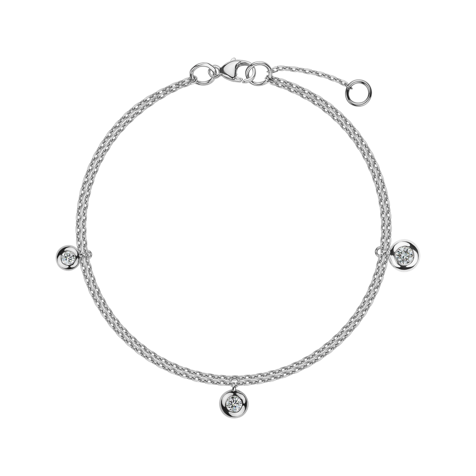 Klenutý v závane luxusu. Tento náramok vyrobený zo 14kt bieleho zlata s najlepšími diamantmi sa stáva vyjadrením slávnostného okamihu, prísľubom večnej slávy, ktorá sa bude blyštiť vašou úspešnou cestou životom. Šperk je súčasťou kolekcie Diamond Rain.