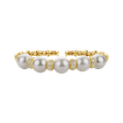 Náramok z 18kt žltého zlata s diamantmi a sladkovodnou bielou perlou symbolizujúcou krásu a čistotu. Jeho zvodný lesk je ako oslava úspechu a elegancie, ideálny pre tých, ktorí oceňujú sofistikovanosť a štýl. Šperk je súčasťou kolekcie Ocean & River.
