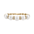 Krásny náramok vyrobený z 18kt žltého zlata s diamantmi a sladkovodnou bielou perlou je umeleckým dielom. Tento šperk bol navrhnutý tak, aby zabezpečil obdiv a úžas pre svojho nositeľa. Biela perla dodáva diamantovým šperkom tajomnosť a mystiku, ktorá očarí každého. Šperk je súčasťou kolekcie Ocean & River.