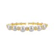 Náramok z 18kt žltého zlata s diamantmi a sladkovodnou bielou perlou symbolizujúcou krásu a čistotu. Jeho zvodný lesk je ako oslava úspechu a elegancie, ideálny pre tých, ktorí oceňujú sofistikovanosť a štýl. Šperk je súčasťou kolekcie Ocean & River.