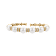 Náramok z 18kt žltého zlata s diamantmi a sladkovodnou bielou perlou symbolizujúcou krásu a čistotu. Jeho zvodný lesk je ako oslava úspechu a elegancie, ideálny pre tých, ktorí oceňujú sofistikovanosť a štýl. Šperk je súčasťou kolekcie Ocean & River.