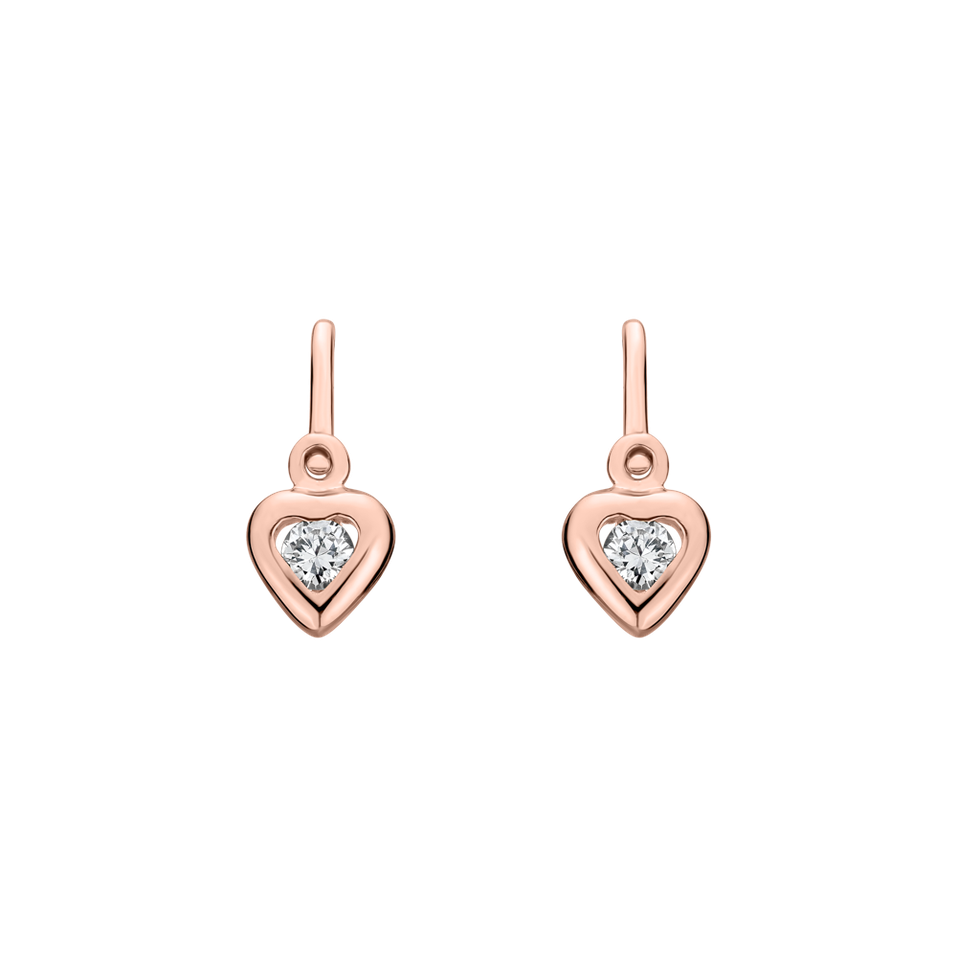 Lesklé 14kt náušnice z ružového zlata s diamantom vnášajú do detskej šperkovnice nádych elegancie. Ideálny doplnok pre malé princezné, ktorý umocní radosť v očiach. Šperk je súčasťou kolekcie Baby.