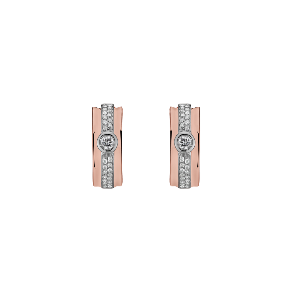 Náušnice z ružového a bieleho zlata 14kt s diamantmi, ktoré žiaria eleganciou a vkusom. Ideálne pre ženy, ktoré chcú do svojho života pridať dotyk luxusu. Šperk je súčasťou kolekcie Luxury Classic.