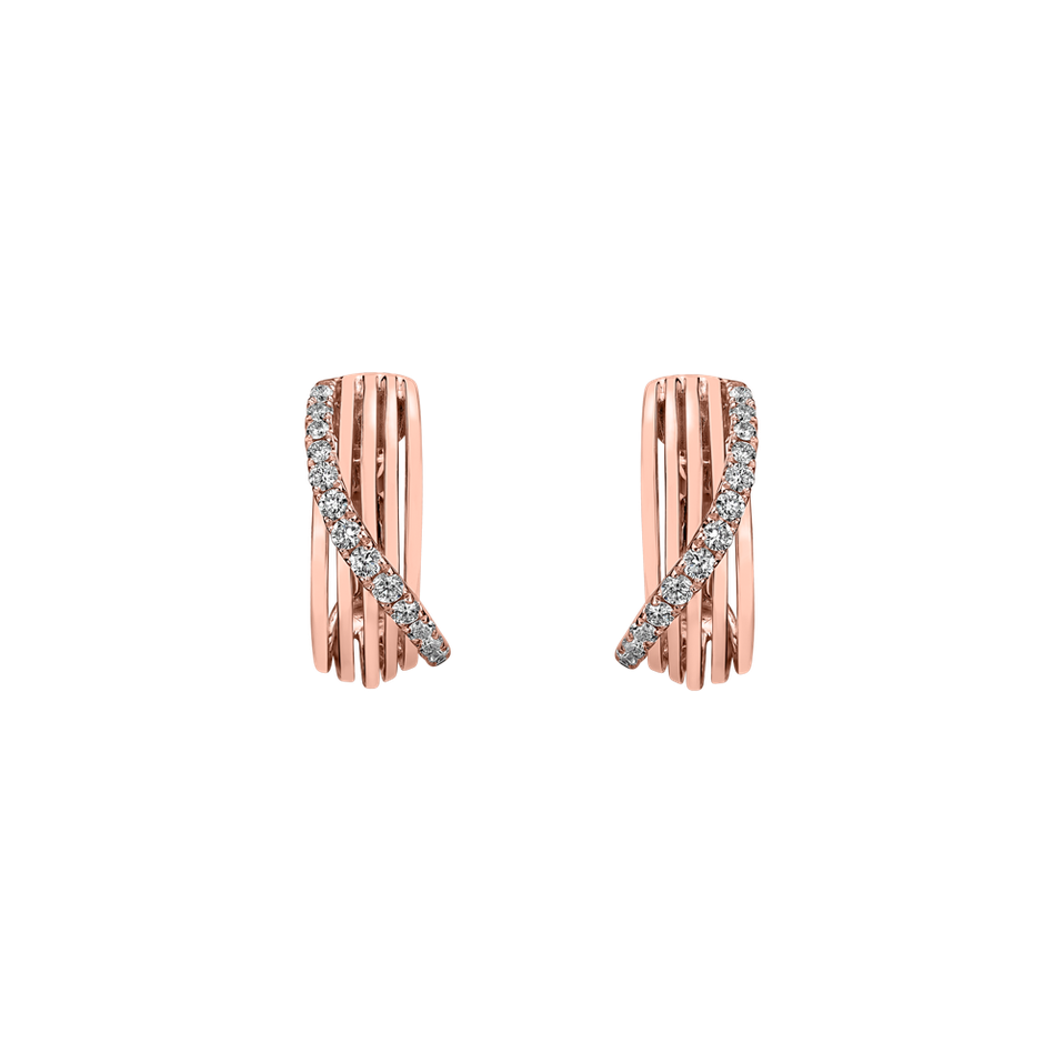 Tieto diamantové náušnice z ružového zlata 14kt sú dokonalou zmesou trvalého luxusu a krásy bez námahy. Ich elegantný dizajn a precízne spracovanie vám poskytnú elegantný a sofistikovaný vzhľad. Šperk je súčasťou kolekcie Essential.