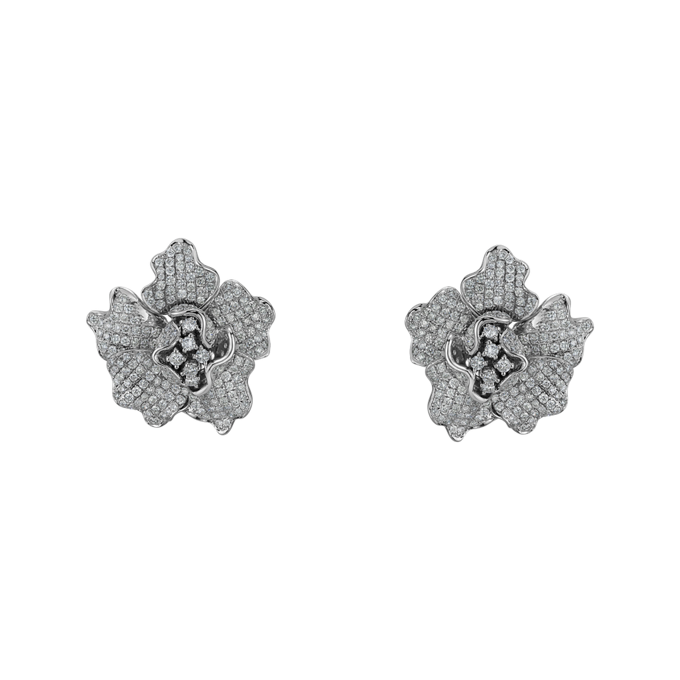 Jemnosť a elegancia sa spájajú v týchto diamantových náušniciach z bieleho zlata s kapacitou 18kt, ktoré oslavujú každé vaše gesto. Šperk je súčasťou kolekcie Flowers.