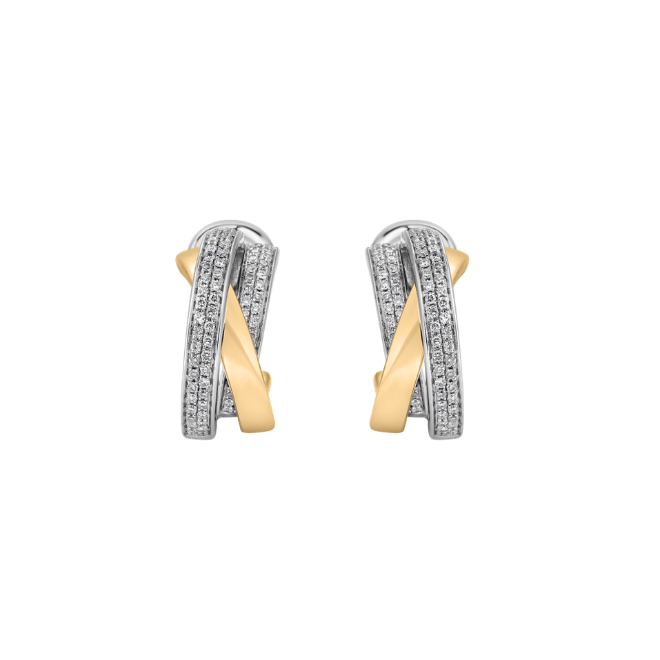 Doprajte si šperk, ktorý žiari v čistom a modernom dizajne týchto náušníc zo 14kt bieleho a žltého zlata s diamantmi, symbolom výnimočného vkusu a osobnej sily. Šperk je súčasťou kolekcie Essential.