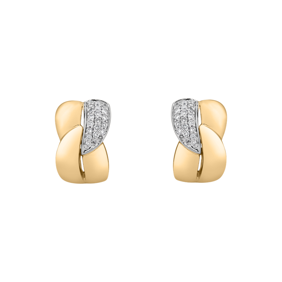 Pre ženy, ktoré chcú vyjadriť svoju individualitu, sú tieto nádherné náušnice v 14kt žltom a bielom zlate s diamantmi perfektnou voľbou. Ich krásny dizajn a trblietavé diamanty dodajú vášmu vzhľadu nádych elegancie a sily. Šperk je súčasťou kolekcie Essential.