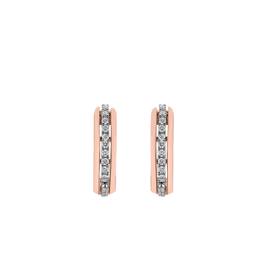 Nádherné náušnice zo 14kt ružového a bieleho zlata s diamantmi - odraz krásy a umenia v ružovom a bielom lesku s najkvalitnejšími kameňmi pre dámy, ktoré chcú zdôrazniť svoj šarm a pôvab. Šperk je súčasťou kolekcie Charming.