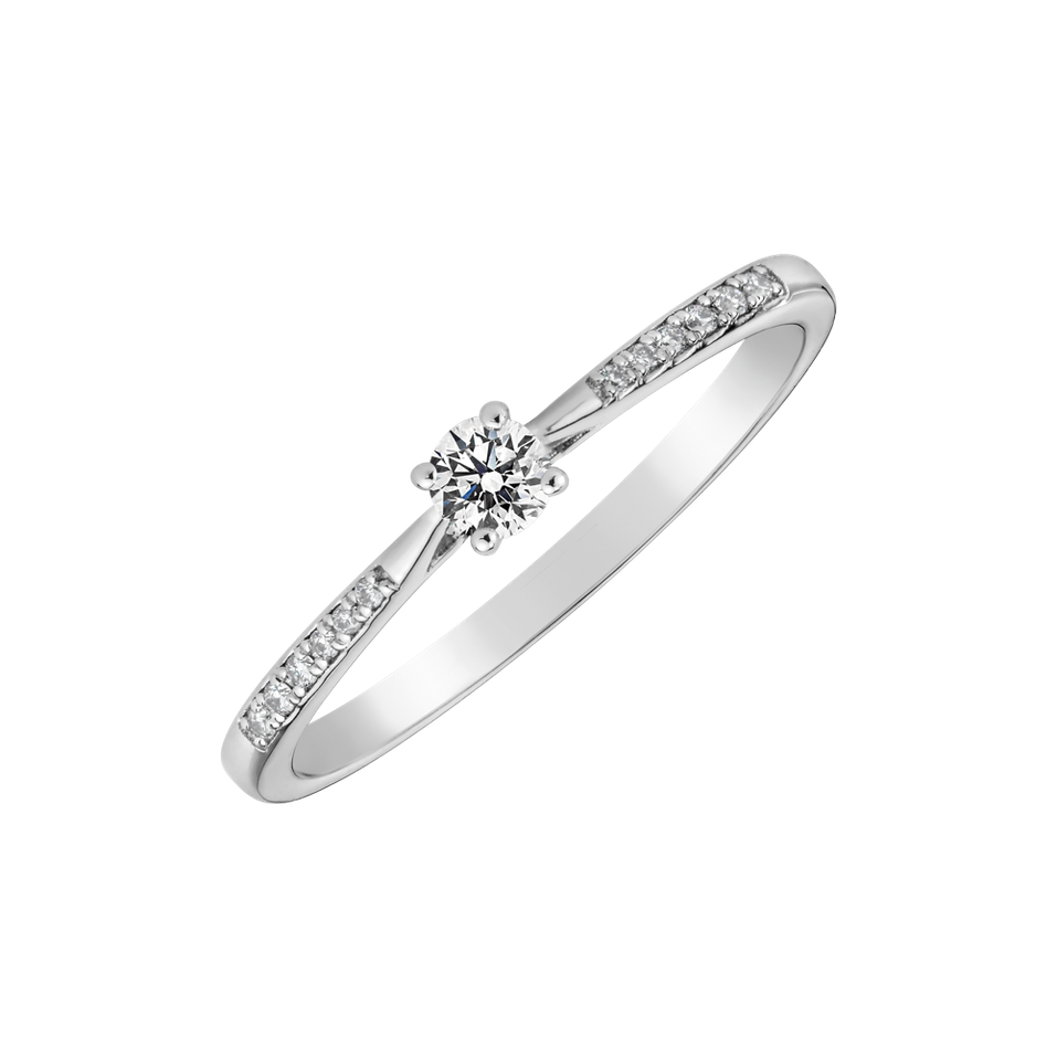 Očarujúci prsteň vyrobený zo 14kt bieleho zlata s brilantne brúseným diamantom je symbolom sofistikovanosti a výnimočnosti. Jeho lesk a jedinečnosť diamantu odrážajú najvyššie remeselné spracovanie a vynaliezavosť. Šperk je súčasťou kolekcie Luxury Classic.