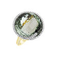 Jemná krása tohto 18kt žlto-bieleho zlatého prsteňa s diamantmi a ametystovou zelenou je oslavou životných úspechov. Jeho neprekonateľná brilancia a dokonalý vzhľad pripomínajú neuhasiteľnú túžbu dosiahnuť svoje sny. Šperk je súčasťou kolekcie Fantasy.