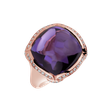 18kt prsteň z ružového zlata s diamantmi a ametystom Brazília je ako iskra večného plameňa - plná energie a sily. Tento klenot je určený pre tých, ktorí hľadajú v živote niečo mimoriadne. Šperk je súčasťou kolekcie Blossoms.