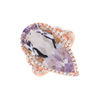 Tento prsteň z ružového zlata 18kt, ktorý kombinuje diamanty s krásnou ametystovou ružovou, je dôkazom hlbokých pocitov a jedinečného štýlu, ktorý vás nikdy nesklame. Jeho nadčasový dizajn a luxusná krása z neho robia nielen elegantný šperk, ale aj verného spoločníka na ceste vaším životom. Šperk je súčasťou kolekcie Fantasy.