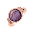 18kt prsteň z ružového zlata s diamantmi a ametystovou brazíliou symbolizujúci spiritualitu a intuíciu. Jeho zvodný lesk je ako oslava mystiky a originality, ideálna pre tých, ktorí si cenia osobný rozvoj. Šperk je súčasťou kolekcie Fantasy.