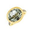 Exkluzívny prsteň z 18kt žltého zlata zdobený diamantmi a ametystovou zelenou farbou je majstrovským dielom šperkárskeho umenia. Jeho jedinečný dizajn a mimoriadna krása ametystovej zelene odhaľujú skutočnú eleganciu. Šperk je súčasťou kolekcie Fantasy.