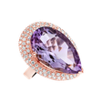 Tento prsteň z ružového zlata 18kt s diamantmi a ametystovou ružovou je ako večný sľub šťastia. Jeho jemný dizajn a trblietky diamantov sú ako iskry na oblohe, ktoré svietia len pre vás. Vaša šťastná hviezda, ktorá zostane navždy. Šperk je súčasťou kolekcie Fantasy.