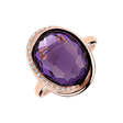 18kt prsteň z ružového zlata s diamantmi a ametystom Brazília je ako iskra večného plameňa - plná energie a sily. Tento klenot je určený pre tých, ktorí hľadajú v živote niečo mimoriadne. Šperk je súčasťou kolekcie Fantasy.