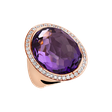 18kt prsteň z ružového zlata s diamantmi a ametystovou brazíliou symbolizujúci spiritualitu a intuíciu. Jeho zvodný lesk je ako oslava mystiky a originality, ideálna pre tých, ktorí si cenia osobný rozvoj. Šperk je súčasťou kolekcie Fantasy.