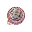 Každý lúč svetla sa zdá byť jasnejší, keď sa odráža od tohto nádherného prsteňa z ružového zlata 18kt s diamantom, ametystovou ružovou a zafírovou ružovou. Jeden šperk - tisíc okamihov nekonečnej brilancie. Šperk je súčasťou kolekcie Fantasy.