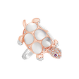 Prsteň s bielymi a hnedými diamantmi, rubínmi a perleťou Turtle Love