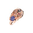 18kt prsteň z ružového zlata, zdobený čiernymi a hnedými diamantmi, zafírom a rubínom je vyjadrením luxusu a jedinečnej chuti. Jeho dizajn vás očarí. Šperk je súčasťou kolekcie Animals.