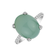 Tento krásny prsteň vyrobený zo 14kt bieleho zlata s diamantmi a tyrkysovým chalcedónom je šperk plný elegancie a exotiky. Tyrkysový chalcedón symbolizuje ochranu a veľa šťastia a diamanty dodávajú prsteňu krásny lesk a svetlo. Toto je šperk pre tých, ktorí hľadajú nezvyčajný a krásny šperk. Šperk je súčasťou kolekcie Blossoms.