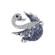 Prsteň s čiernymi a bielymi diamantmi a zafírmi Magical Swan