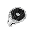 Tento prsteň z bieleho a čierneho zlata s hmotnosťou 18kt, zdobený čiernymi diamantmi, je malým, ale významným odrazom nebeského svetla vo vašom oblečení. Šperk je súčasťou kolekcie Luxury Classic.