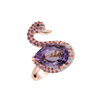 Elegancia nie je nikdy prehliadnutá, keď nosíte tento 18kt prsteň z ružového zlata s diamantom, ametystovou brazíliou a zafírovou ružovou, čo je dokonalým dôkazom toho, že skutočná krása môže byť jednoduchá a lesklá zároveň. Šperk je súčasťou kolekcie Animals.