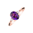 Klasický design zásnubního prstenu v moderním provedení. Oválný centrální ametyst je po stranách zdoben dvěma menšími diamanty, což vypadá opravdu úchvatně.