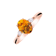 Klasický design zásnubního prstenu v moderním provedení. Oválný centrální citrín je po stranách zdoben dvěma menšími diamanty, což vypadá opravdu úchvatně.