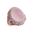 18kt prsteň z ružového a bieleho zlata s diamantmi a drahokamami je ako návšteva farebného trhu plného exotických pokladov. Jeho diamanty a drahokamy tvoria kombináciu, ktorá očarí a priťahuje. Šperk je súčasťou kolekcie Blossoms.