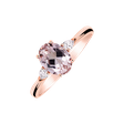 Klasický design zásnubního prstenu v moderním provedení. Oválný centrální morganit je po stranách zdoben dvěma menšími diamanty, což vypadá opravdu úchvatně.