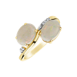 Tento prsteň zo 14kt žltého a bieleho zlata s diamantmi a opálovou bielou farbou je dokonalou zmesou trvalého luxusu a krásy bez námahy. Jeho elegantný dizajn a precízne spracovanie vám poskytnú elegantný a sofistikovaný vzhľad. Šperk je súčasťou kolekcie Blossoms.