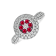 Obdarujte seba alebo milovanú osobu týmto prsteňom z bieleho zlata 18kt s diamantmi a rubínom, ktorý je symbolom jedinečnosti a čistoty pri každom nádychu. Perfektný šperk pre tých, ktorí ocenia krásu v každom detaile. Šperk je súčasťou kolekcie Mirage.