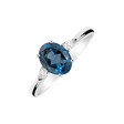Klasický design zásnubního prstenu v moderním provedení. Oválný centrální topaz je po stranách zdoben dvěma menšími diamanty, což vypadá opravdu úchvatně.