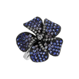 Ohromujúci prsteň z 18kt bieleho a čierneho zlata zdobený diamantmi a zafírom, ktorý mu dodáva nezabudnuteľné čaro. Tento šperk je dokonalým doplnkom pre elegantné večery a špeciálne príležitosti. Jeho diamanty a zafír spoločne vytvárajú harmóniu vyžarujúcu krásu a luxus. Šperk je súčasťou kolekcie Flowers.