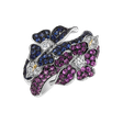 Dajte svetu vedieť o svojich úspechoch v živote. Tento prsteň v 18kt bielom, čiernom a žltom zlate s diamantmi, zafírom a zafírovou ružovou predstavuje dokonalosť v podobe šperku, ktorý je silným vyjadrením osobného šarmu a nadčasového štýlu. Šperk je súčasťou kolekcie Flowers.