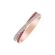 Diamanty, zafír a presnosť. 18kt prsteň z ružového zlata s diamantmi a zafírovou ružovou farbou je majstrovským dielom ručnej práce a ozdobou pre tých, ktorí poznajú hodnotu skutočnej krásy a sily. Šperk je súčasťou kolekcie Essential.