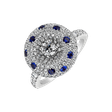 Jemne vyrobený prsteň vyrobený z 18kt bieleho zlata s diamantmi a zafírom je ako krásna pieseň zachytávajúca podstatu krásy a harmónie. Tento klenot je ako stvorený pre chvíle, keď chcete zažiariť ako nikdy predtým. Šperk je súčasťou kolekcie Luxury Classic.