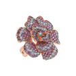 Elegantný prsteň s 18kt ružovým zlatom zdobený diamantmi a zafírovou ružovou. Perfektný doplnok pre každú príležitosť na úspech. Šperk je súčasťou kolekcie Flowers.