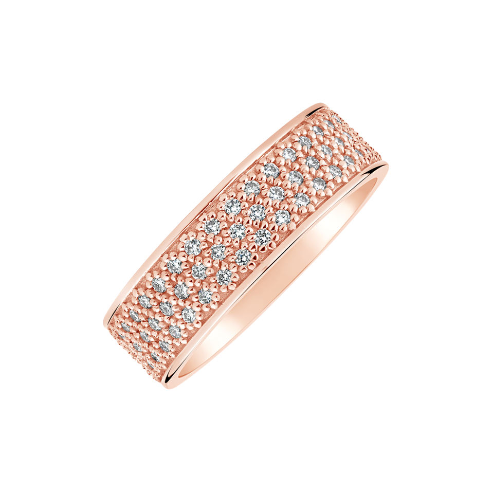 14kt prsteň z ružového zlata s diamantmi je ako žiariaca hviezda na tmavej oblohe. Jeho jedinečná krása vás oslní a privedie do centra pozornosti. Buďte tým, kto svieti v tme. Šperk je súčasťou kolekcie Creoles.
