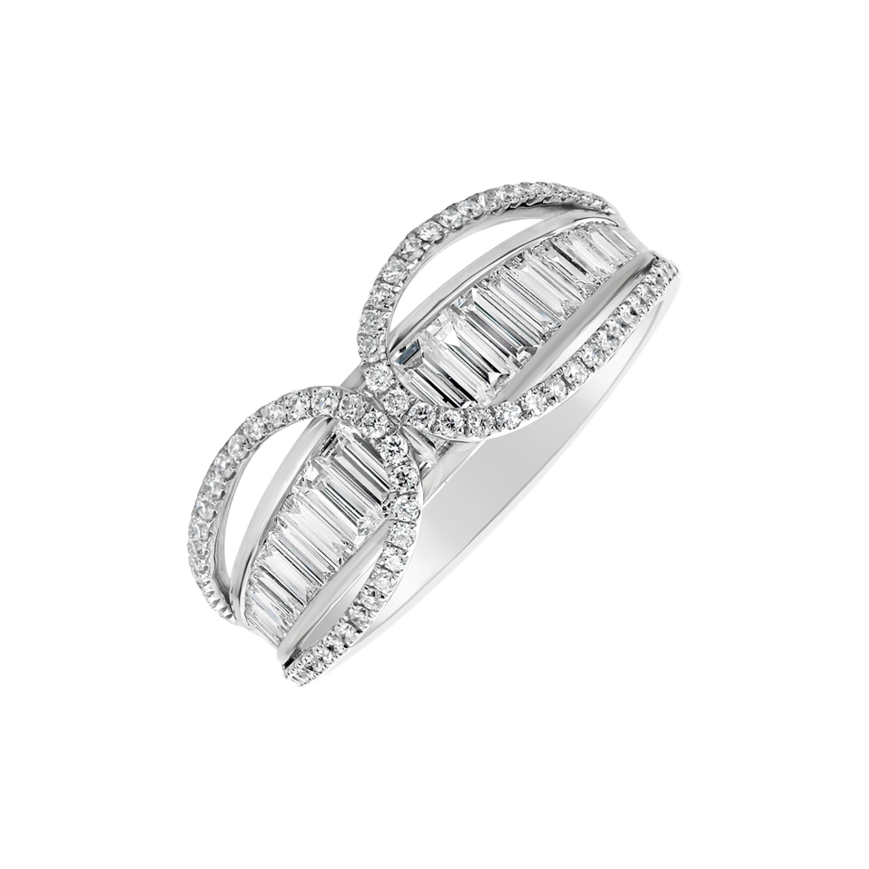 Elegantný prsteň z bieleho zlata 18kt zdobený trblietavými diamantmi je symbolom luxusu a sofistikovanosti. Ideálny darček pre ženu, ktorá ocení precíznosť a remeselné spracovanie šperkov. Šperk je súčasťou kolekcie Glamour Edge.