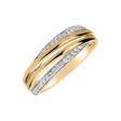 Prsteň vyrobený zo 14kt žltého a bieleho zlata s diamantmi je ako harmónia dvoch kvetinových druhov. Jeho diamanty sú ako jemné kvapky rosy na kvetoch, ktoré zdobia čistú krásu a večnú lásku. Šperk je súčasťou kolekcie Essential.