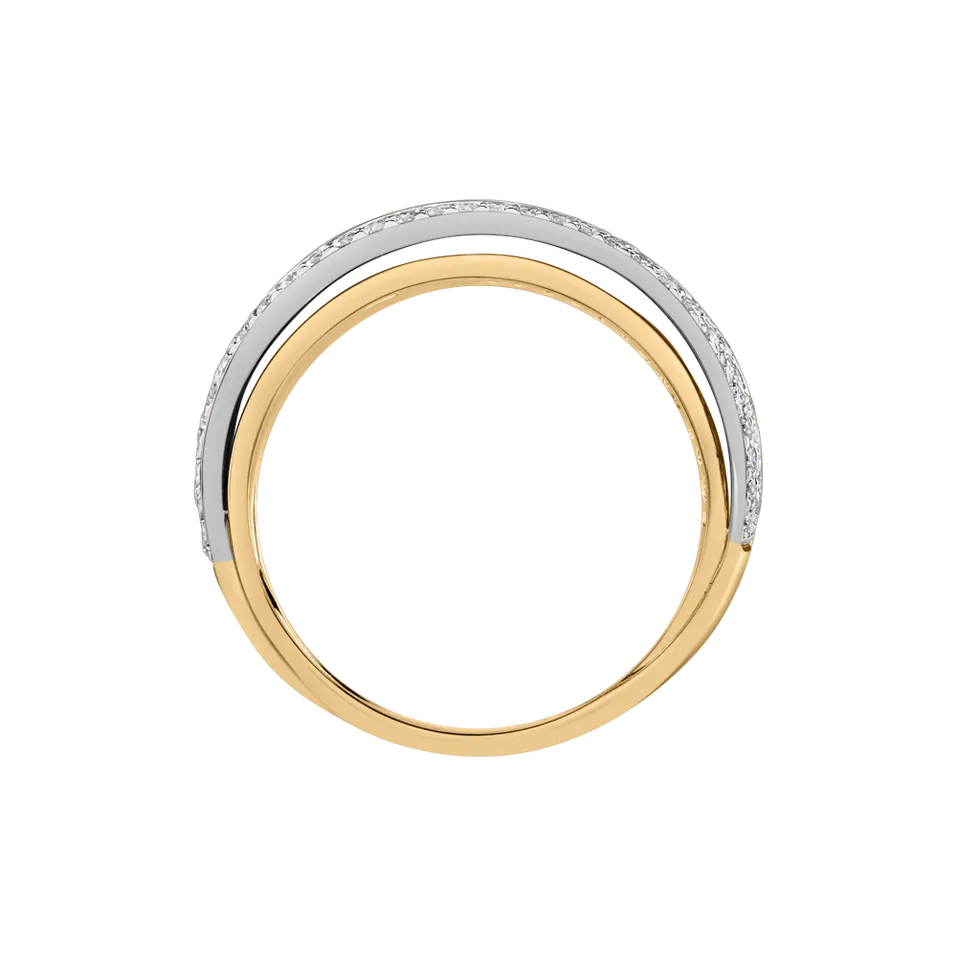 Objavte tajomstvá svetla s týmto diamantovým prsteňom zo žltého a bieleho zlata 14kt. Zbierka iskrivých momentov, ktoré sú vytesané do večnosti. Šperk je súčasťou kolekcie Essential.