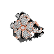 Kráľovský prsteň s diamantmi zasadený do krásneho 18kt čierneho a ružového zlata je skutočným odrazom prestíže a elegancie. Jeho jedinečná krása a žiarivá žiara stelesňujú luxus a exkluzivitu. Šperk je súčasťou kolekcie Flowers.
