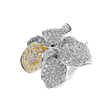 Prsteň vyrobený z 18kt bieleho a žltého zlata s diamantmi je ako spojenie dvoch svetov - sveta precíznej výroby a sveta romantickej krásy. Jeho trblietavé diamanty sú ako most medzi klasickou eleganciou a moderným nádychom. Šperk je súčasťou kolekcie Flowers.