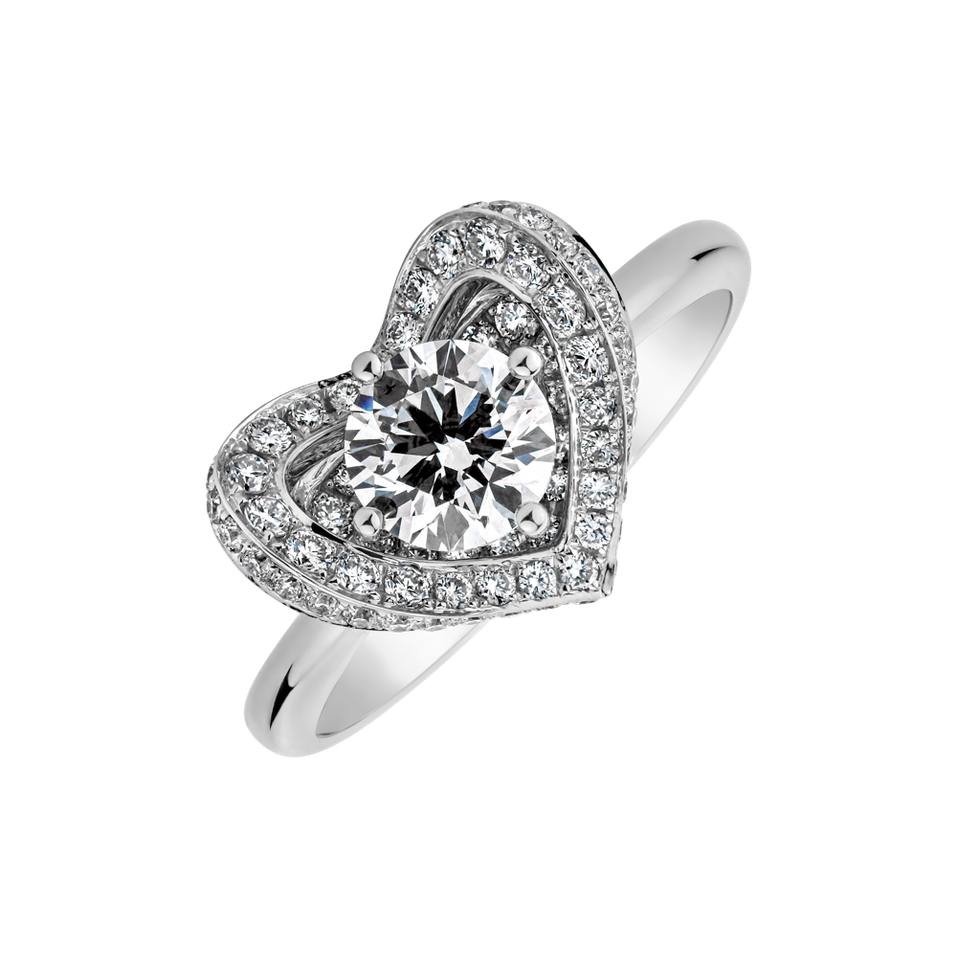 Tento prsteň z bieleho zlata 18kt s diamantmi je majstrovským dielom výtvarného umenia. Jeho čisté línie a oslnivý lesk sú ako hladina pokojného jazera pod hviezdnou oblohou. Šperk je súčasťou kolekcie Hearts.